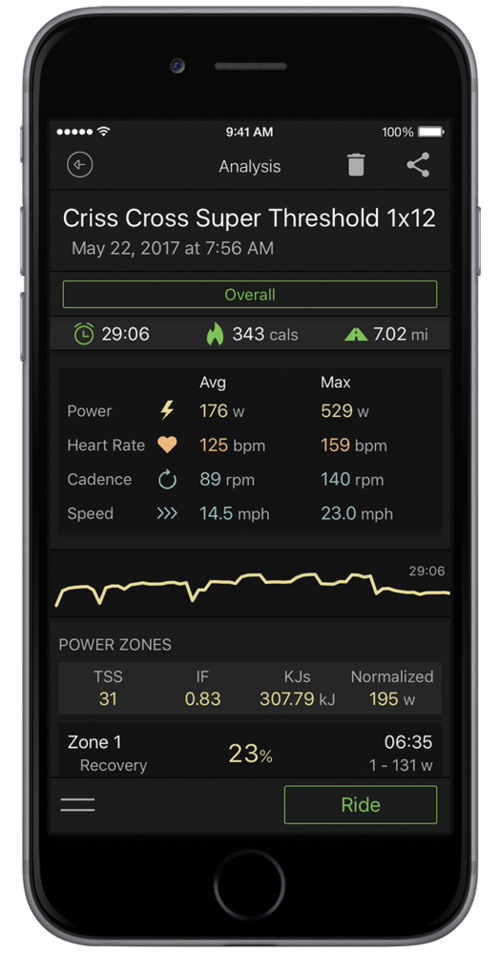 Workouts are organized by training zones and streaming video categories to help you quickly find what you’re looking for. Filter workouts with a touch of a finger. You can organize each zone or category by Name, Duration, Intensity Factor (IF) and Training Stress Score (TSS) or use the search field.